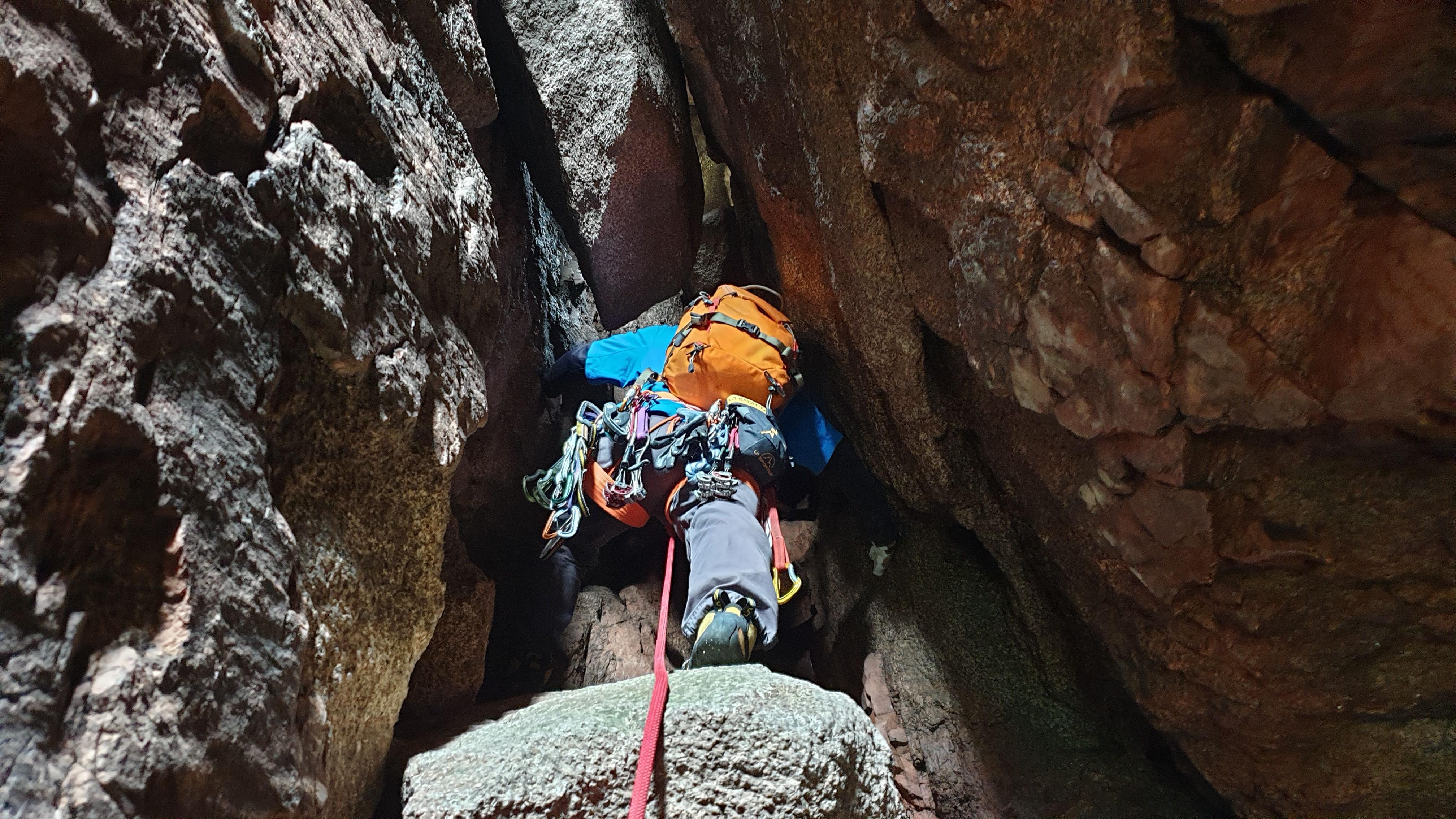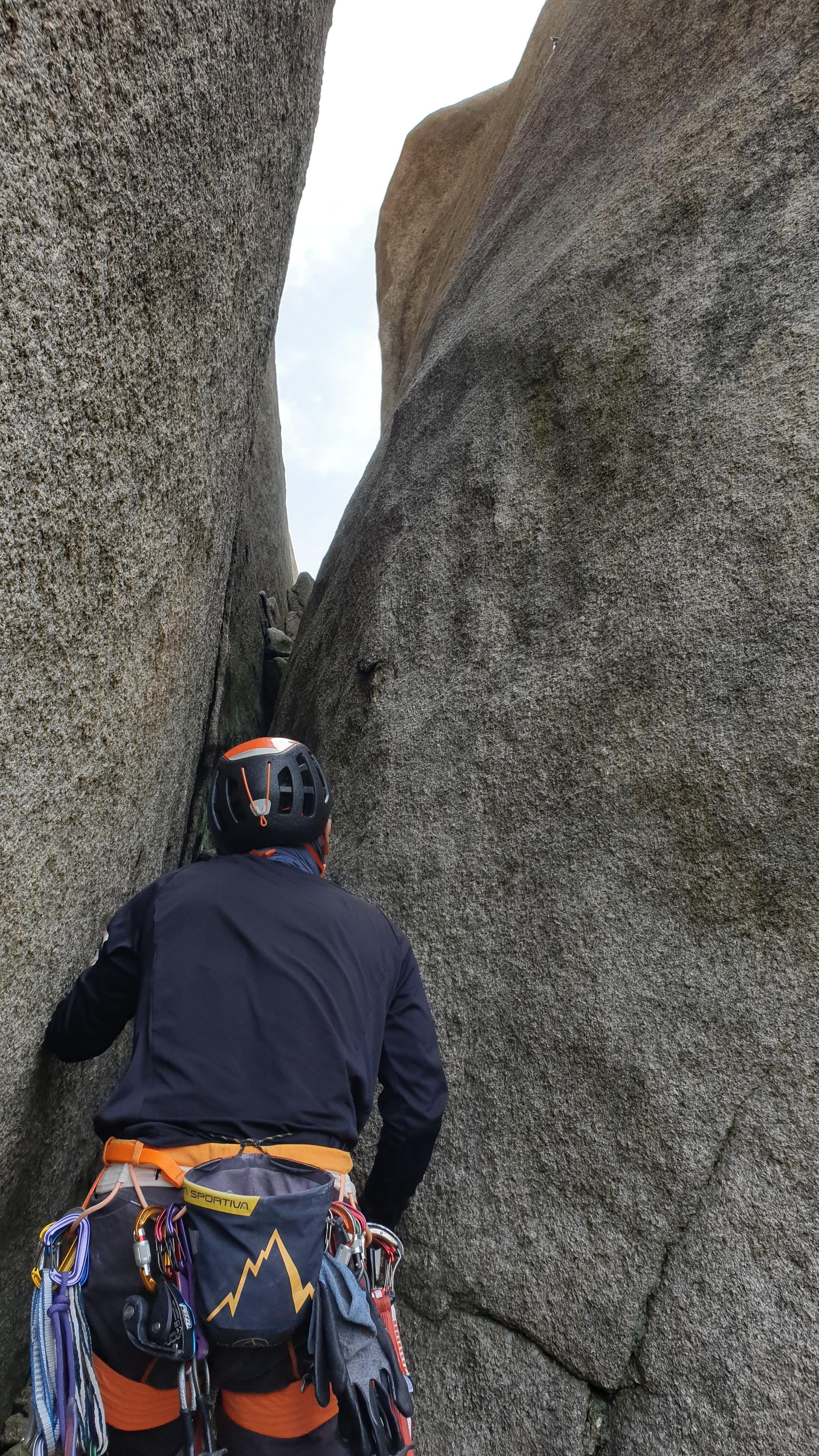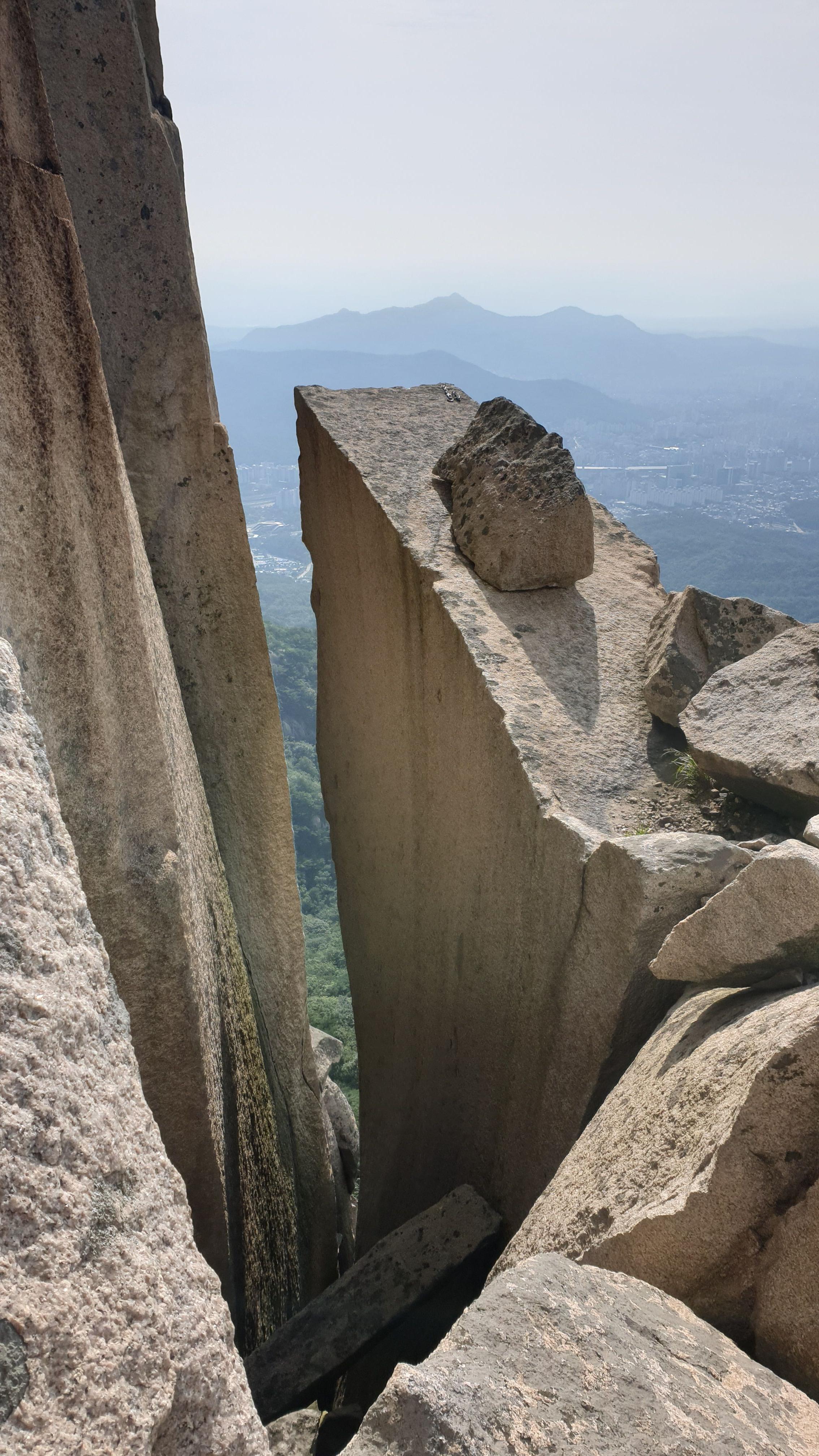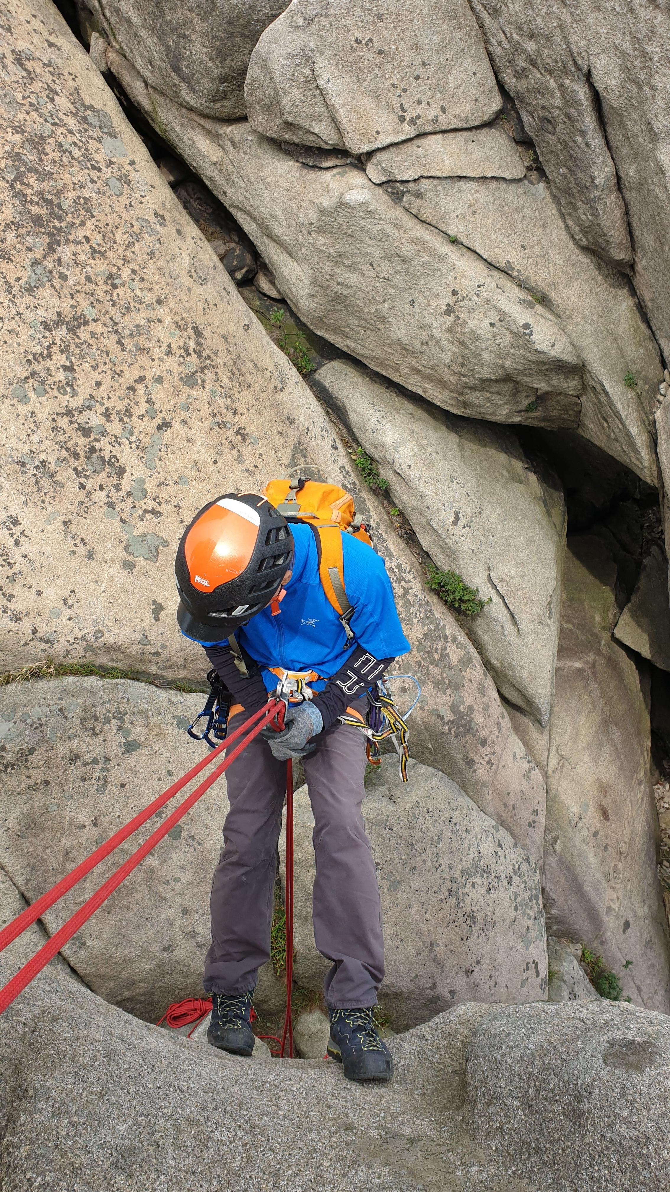 추석 연휴의 마지막 날이다. 오랜만에 도봉산의 선인봉으로 향한다. 나주의 고향집을 다녀오는 길에 장시간의 운전으로 피곤이 쌓인 심신을 달래기 위해 부담 없이 다녀올 수 있는 남측길 등반에 나선다. 아침 8시 즈음에 도봉탐방안내소를 통과하여 1시간 30분 정도의 어프로치를 통해 남측길 출발점인 타이타닉 바위 앞의 공터에 도착한다. 사방으로 확 트인 멋진 조망을 즐기며 여유롭게 장비를 착용한 후 남측길 등반을 출발한다. 작년에 처음으로 등반했던 경험을 되살려 펜듈럼 구간과 침니를 가뿐하게 통과한다. 호랑이굴을 관통하여 선인봉 정상에 올라 한가로운 점심시간을 즐긴다. 오늘은 만장봉으로 가지 않고 곧바로 하강하여 천천히 산을 내려온다. 아담한 폭포 아래의 계곡물에서 탁족하는 순간 암벽화에 시달렸을 발이 치유되는 듯한 시원함이 느껴진다. 초가을의 청명한 하늘 아래에서 상쾌한 기분으로 편안하게 등반을 즐겼다는 만족감이 남았다.