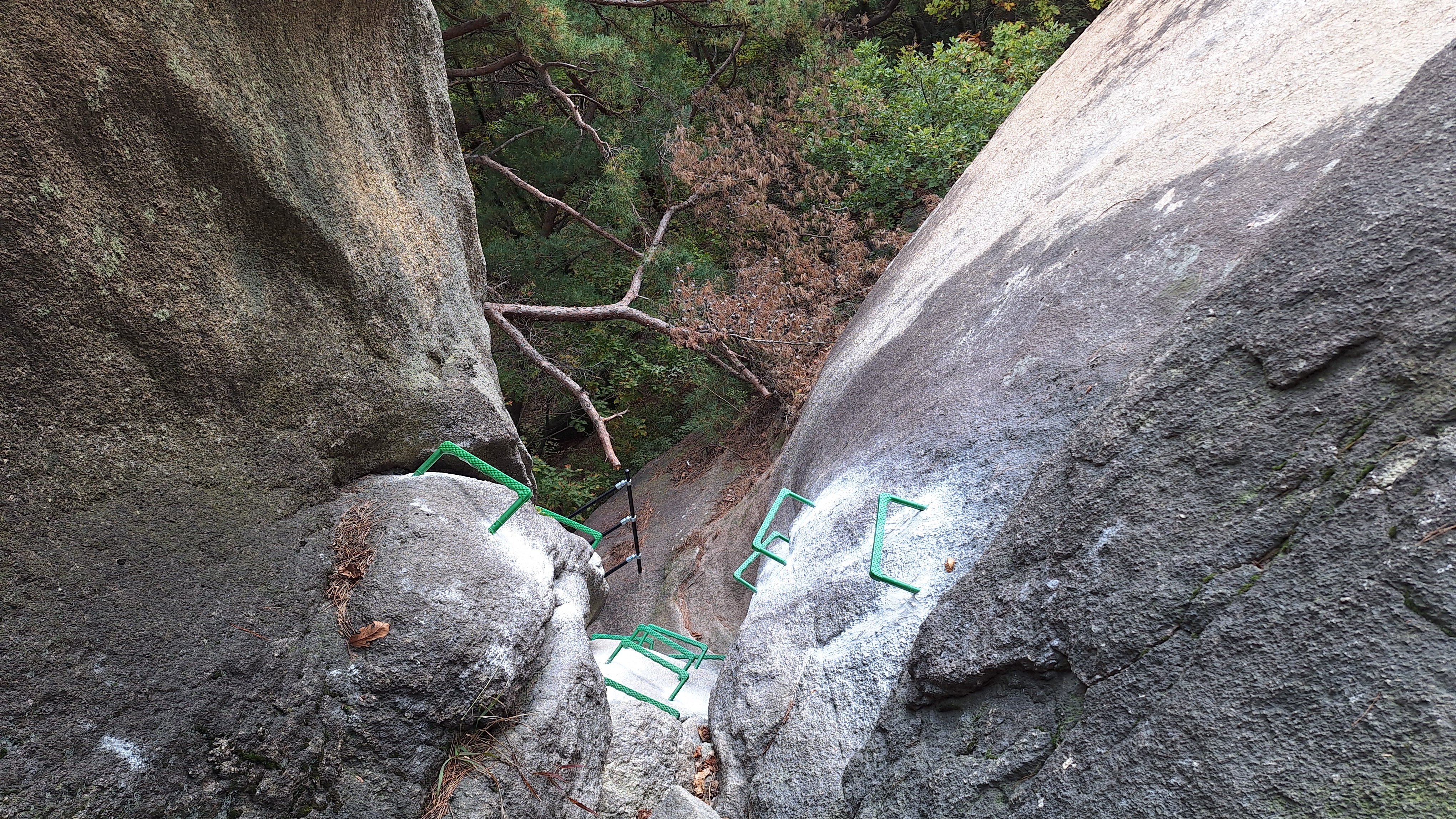 불암사 아래의 공용주차장에서 곧장 애기봉 방향으로 오른다. 애기봉에서부터 시작된 암릉길은 최근에 공사를 마친 듯하다. 예전엔 릿지화의 마찰력에 의지해 오르던 슬랩에 철제 난간과 디귿자형 쐐기가 설치되어 일반 산객들도 오를 수 있는 코스가 정상까지 뚫린 셈이다. 조금 과하다 싶은 암릉 상의 등로가 눈에 거슬리는 건 어쩔 수가 없다. 여러 사람이 안전하게 산과 바위를 즐길 수 있는 장치로 여기는 너그러운 마음으로 이해의 폭을 넓혀보기로 한다. 새롭게 열린 등로로 많은 산객들이 오르내리는 걸 보면서 내가 좋아하던 한적한 산행 루트가 하나 사라졌다는 아쉬움이 드는 건 어쩔 수가 없다. 정상에서 덕릉고개를 지나 수락산 지역의 동막골에서 불암산역으로 하산한다. 최근 건강 상태가 별로여서 가라앉아 있던 기분이 어느 정도 활기를 되찾은 듯한 힐링 산행이었다.