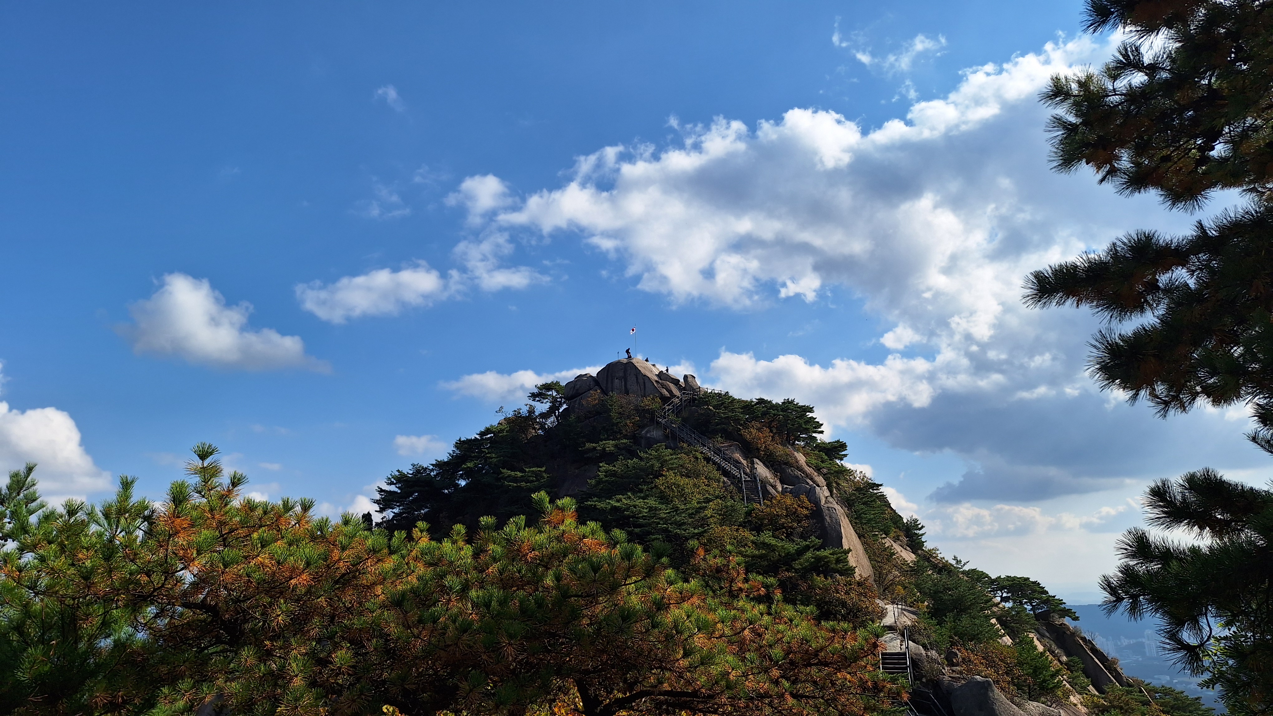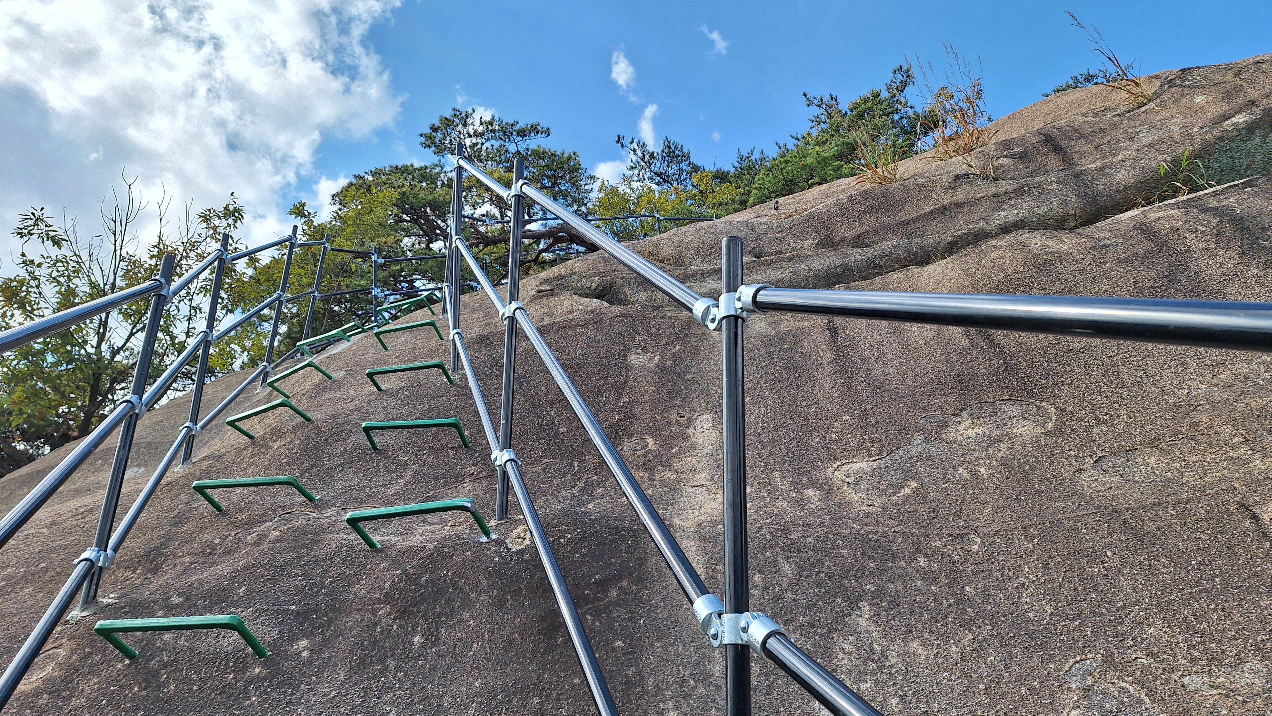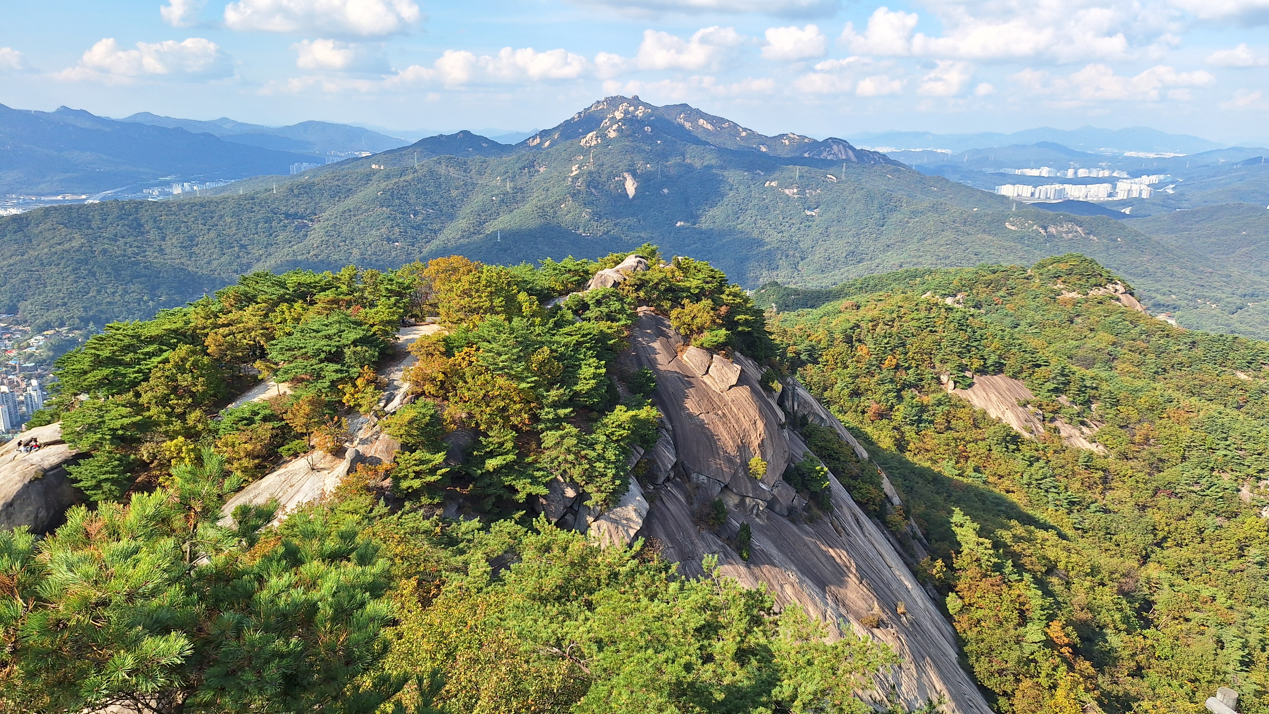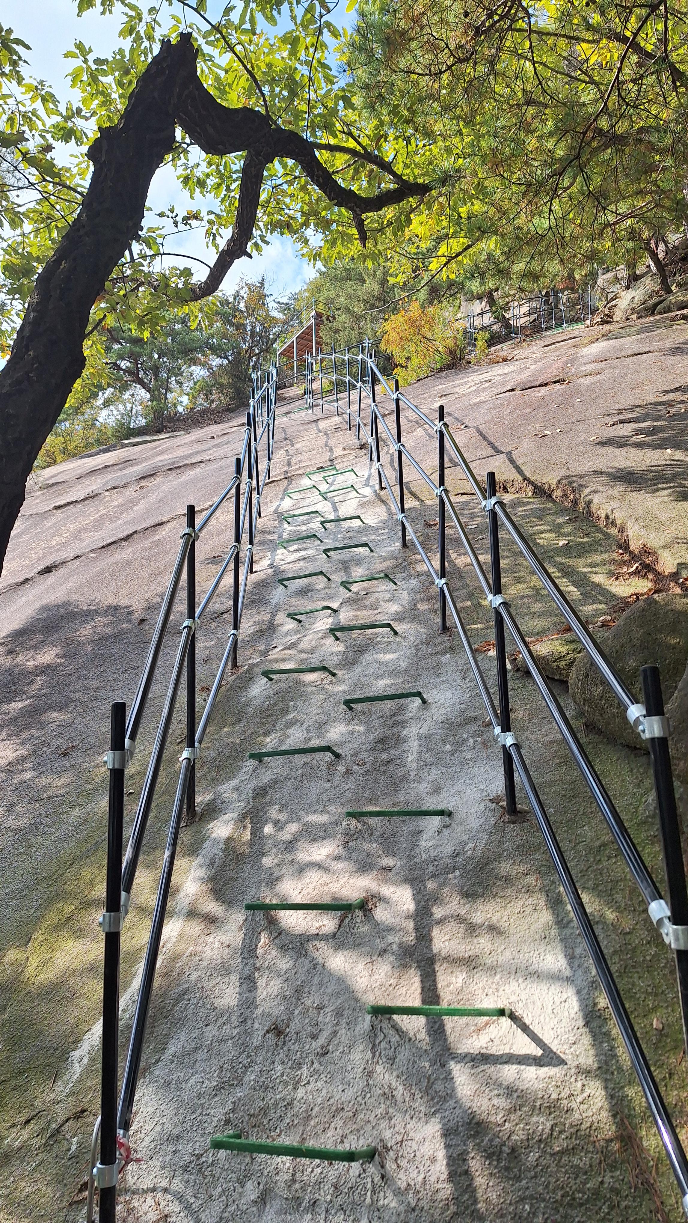 몸상태가 그리 좋지 않아도 이렇듯 좋은 가을날에 산에 가고싶은 마음을 억누를 수 없다. 농양 제거 수술 이후에 아직은 조심스러운 몸으로 불암산을 올라보기로 한다. 상계역에서 출발하여 불암산자락길을 거쳐 서울둘레길로 접어든다. 대학암장 위의 봉우리에 올라서 편안한 커피타임을 갖는다. 하계동 달동네가 재개발 중인 현장이 눈에 들어온다. 도시개발에서 소외된 이들이 없기를 바라는 마음을 뒤로 하고 다시 발길을 재촉하여 태릉에서 올라오는 능선길에 합류한다. 능선길 중간에서 빠져나와 천보사를 거쳐 불암사 방향으로 내려간다. 몇 주 전의 피크암장 등반 때 공사중이던 암릉길을 확인하고픈 생각에서 정한 발걸음이다.