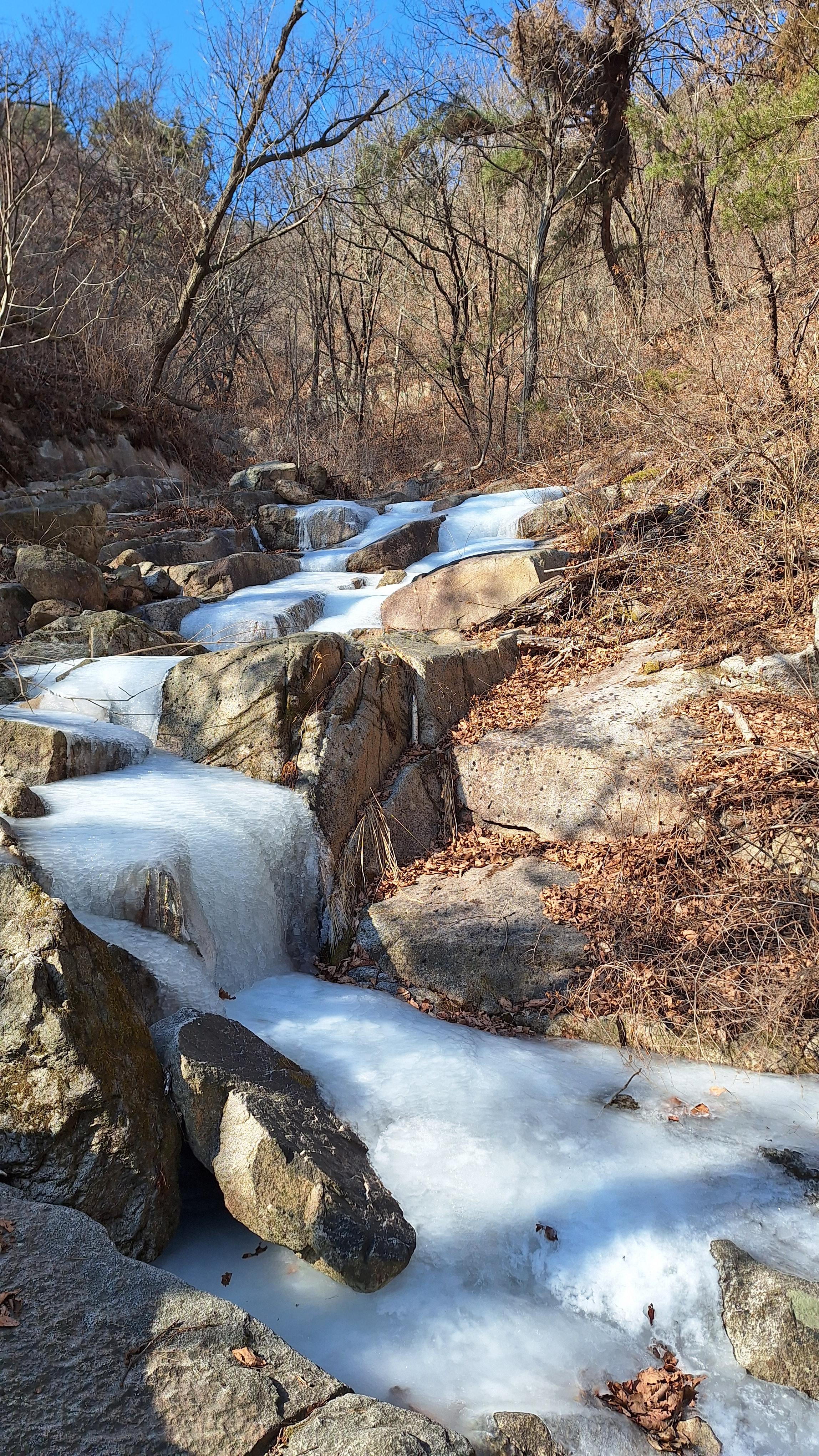 병오년 새해도 벌써 한 달이 훌쩍 흘러갔다. 1월의 마지막 날답게 여전히 추운 아침이지만 주말산행을 거를 수는 없다. 정릉계곡을 거슬러 올라 보국문에 이르는 산길의 햇살이 어느 정도 추위를 잊게 해 준다. 영하 10도 이하로 떨어지는 강추위가 지속된 탓에 계곡은 꽁꽁 얼어 있다. 몸도 마음도 움츠러드는 걸 어찌할 수 없지만, 이 추위의 혹독함도 거의 끝물일 것이라는 생각으로 위안을 삼는다. 보국문 옆의 성벽을 바람막이 삼아 자리한 안온한 쉼터에서 컵라면과 커피가 함께 한 점심시간이 여간 여유로운 게 아니다. 대동문으로 향하는 산성주릉에 올라서니 계곡에서 불어오는 북서풍의 찬기운이 몸 속을 파고든다. 대동문에서 진달래능선을 따라 하산길에 접어드니 다시 온화한 겨울 햇살이 반겨준다. 오랜만에 아카데미하우스 방향으로 내려오면서 하얗게 얼어붙은 빙계를 구경하는 발걸음이 편안하다. 이제 곧 얼음은 녹아내릴 것이고, 다시금 활기찬 봄날은 반드시 찾아올 것이다.