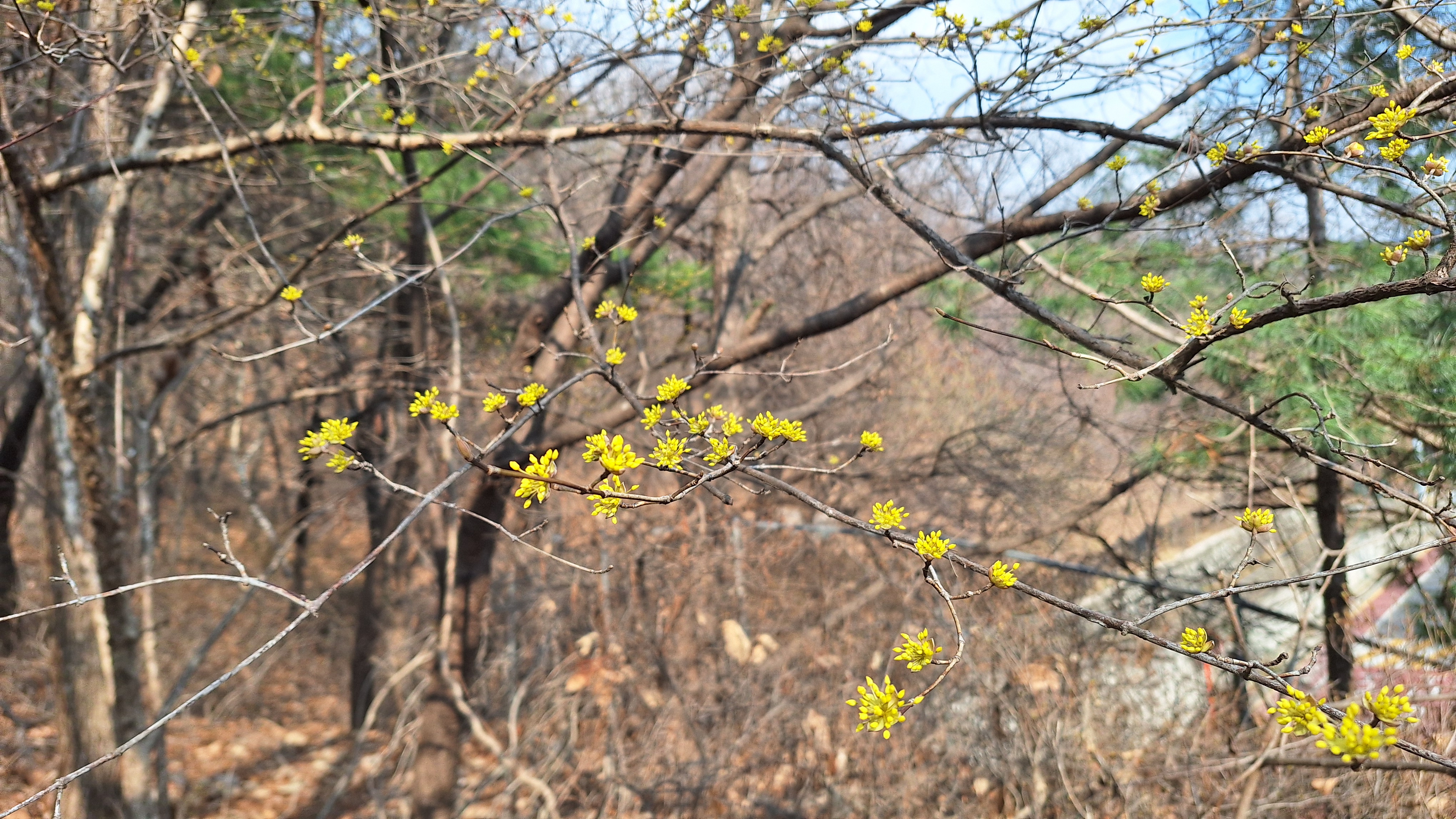 올해 서울에서 봄꽃이라 할 수 있는 것을 처음 본 건 지난 월요일인 3월 9일이었다. 천만 영화에 등극한 <왕과 사는 남자>를 관람한 후, 성북천변을 산책하던 중 영춘화를 만난 것이다. 처음엔 개나리꽃인줄 알았는데, 자세히 보니 영춘화였다. 산에서는 오늘 처음으로 생강나무꽃과 산수유꽃을 보았다. 어젯밤에 확인할 때만 하더라도 없었던 비 예보를 오늘 아침 기상 직후에 발견할 수 있었다. 불암산 암장에서 등반하려던 약속을 취소하고, 몸과 마음이 모두 가벼운 도보산행으로 변경하여 수락산에 올라보기로 했다.