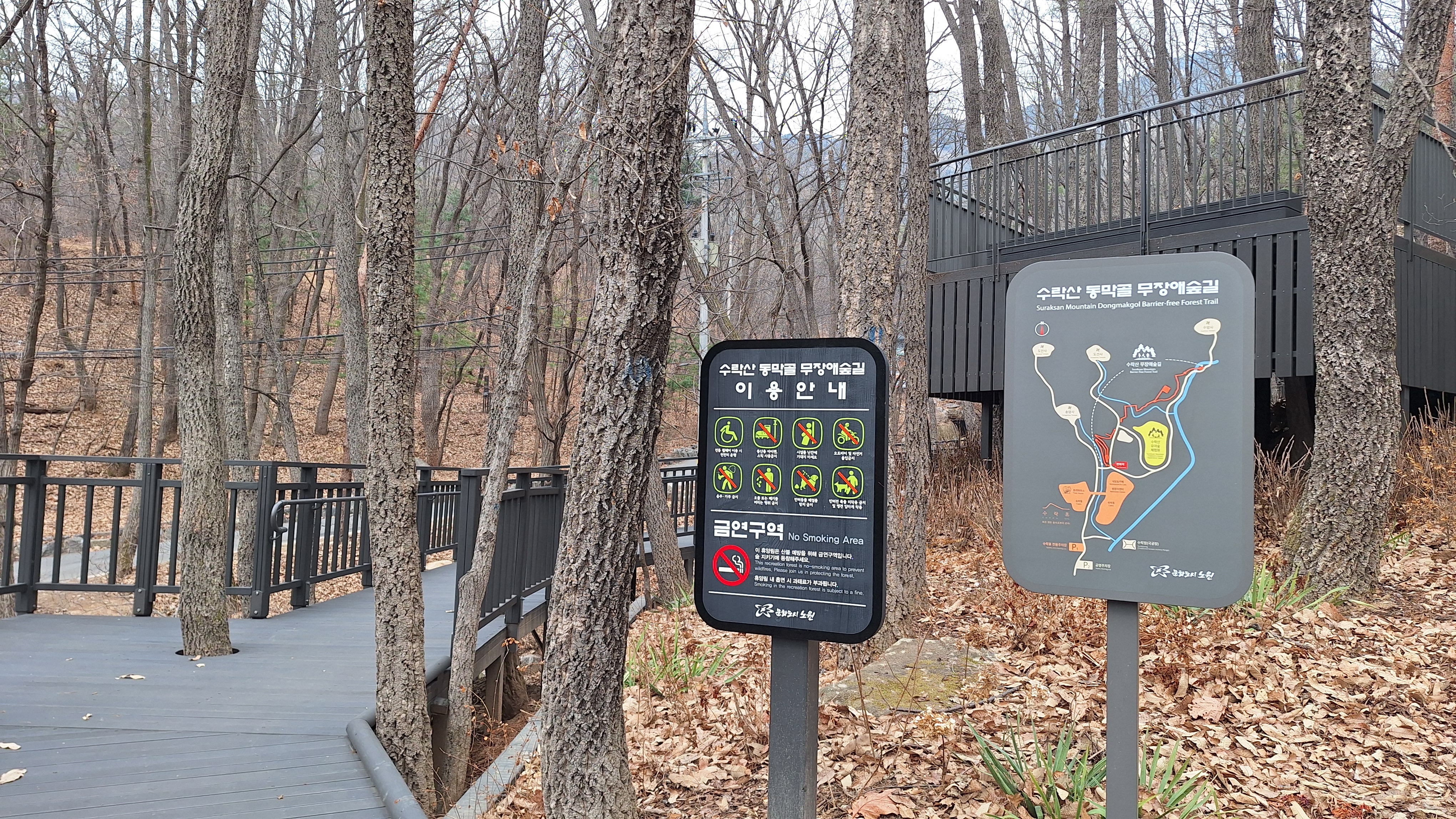 서울둘레길을 따라 벽운계곡에서 노원골로 넘어가서 다시 길게 이어진 무장애숲길을 걸었다. 생강나무꽃을 다시 만날 수 있었던 데크길에는 오후부터 간간히 햇빛이 비춰준 때문인지 남녀노소 많은 사람들이 산책을 즐기고 있었다. 무장애숲길 종점에서 다시 서울둘레길로 오르는 중간에 산수유꽃을 보았다. 생강나무꽃과는 또다른 모양의 노란꽃을 구경한 순간엔 입가에 미소가 저절로 피어났다. 거인발자국 바위와 익숙한 채석장 전망대를 지나 서울둘레길 1구간 종점에서 능선길을 따라서 상계역으로 하산했다. 봄꽃을 보면서 수락산의 산길을 배회하듯 3만보 가까이 길게 걸었던 오늘의 산행이 뿌듯했다. 뒷풀이 시간에 먹었던 감자옹심이와 메밀부침개 또한 별미였다.