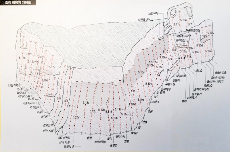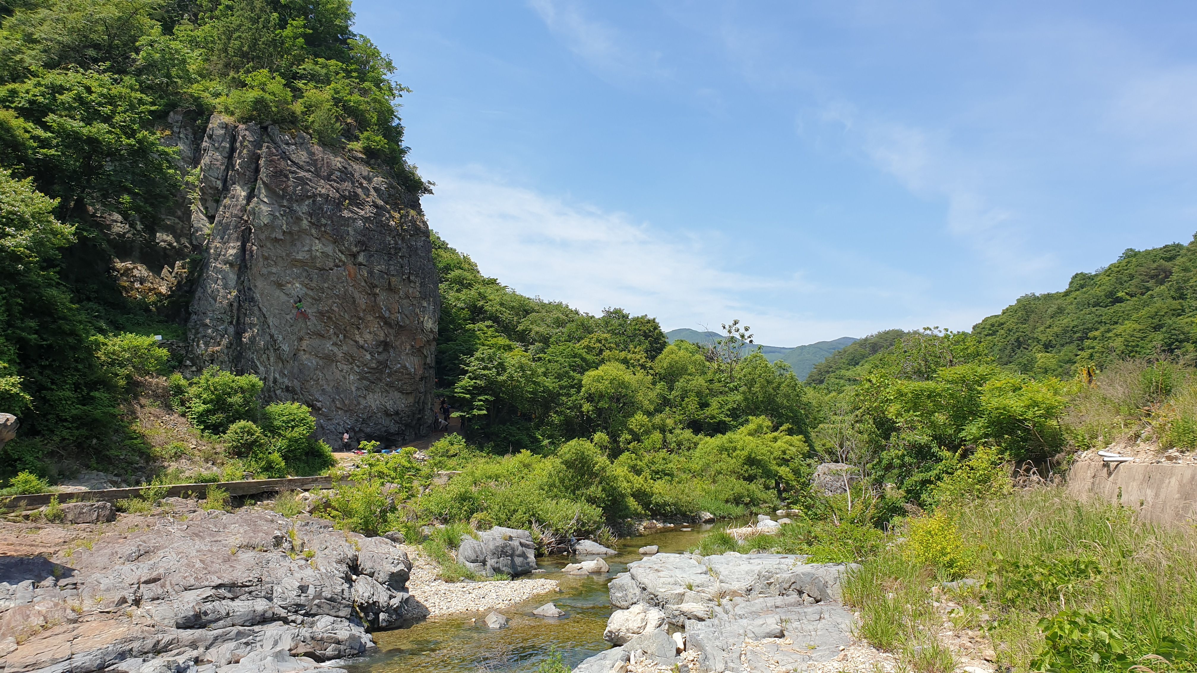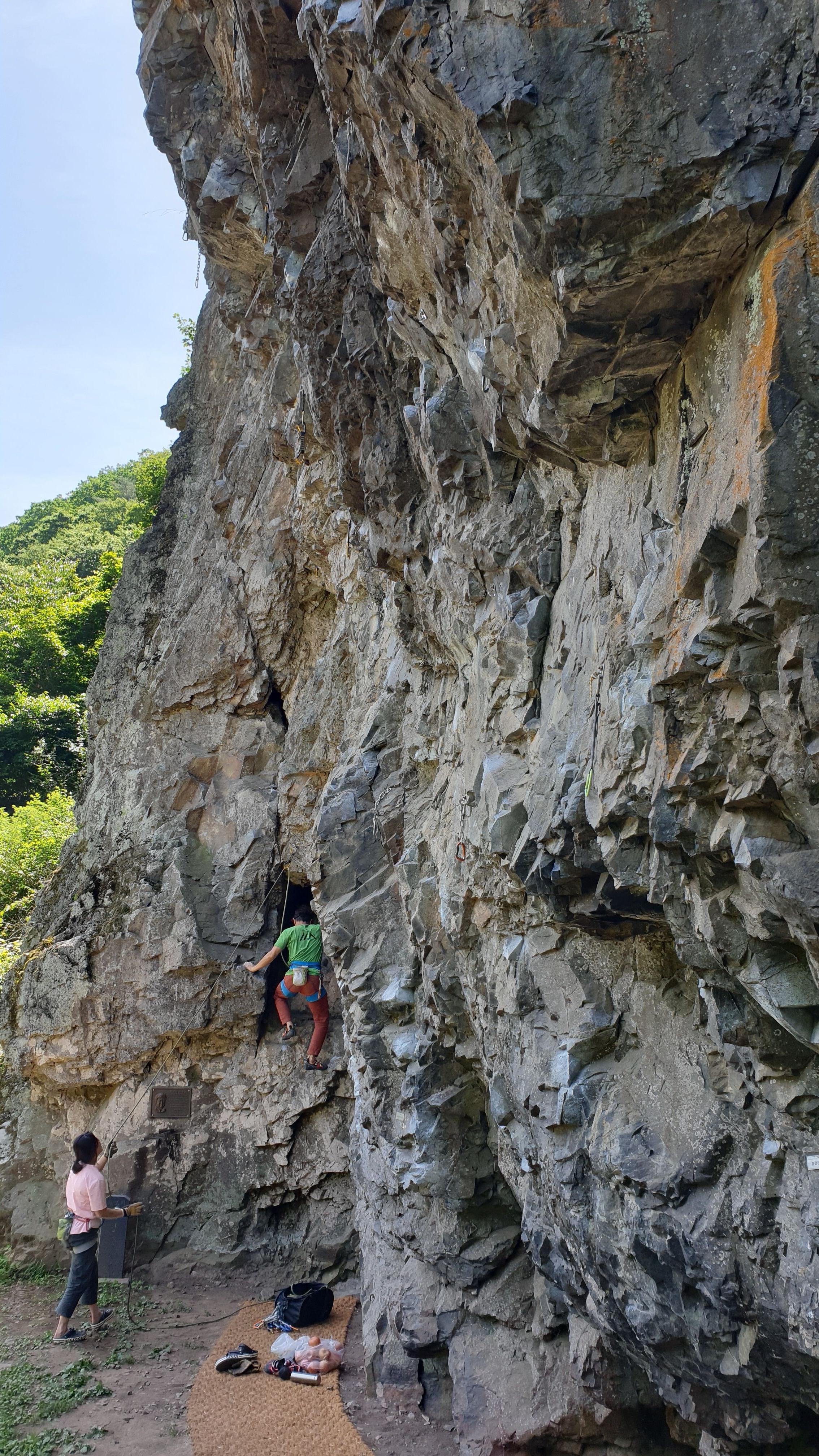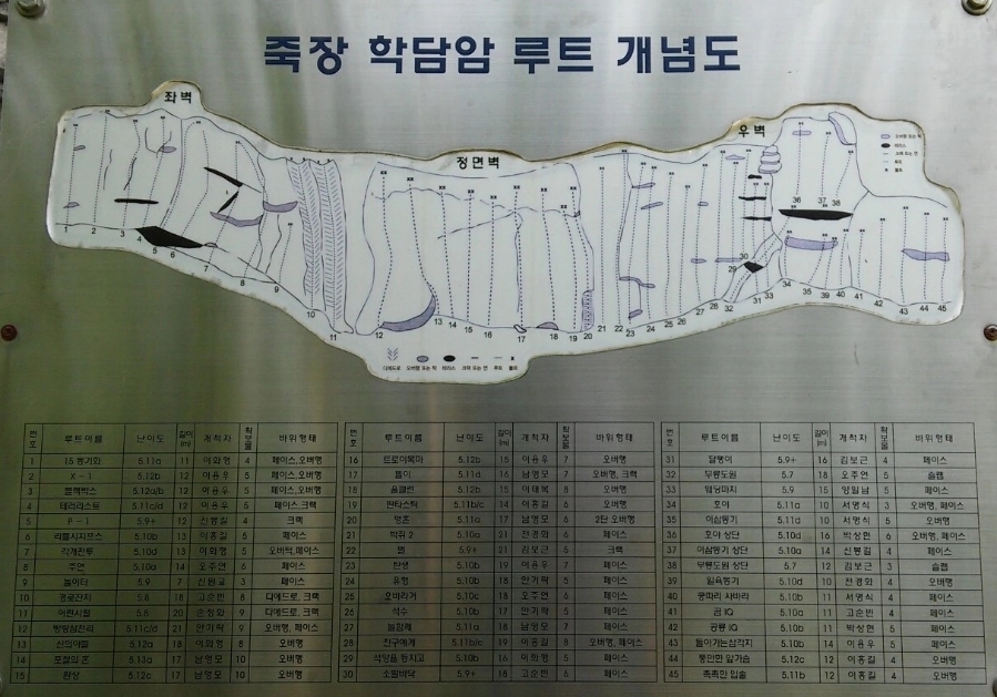 어제는 내연산 등반을 마치고 인근의 동해안 화진해수욕장 부근에 자리한 숙소에서 잘 쉬었다. 오늘 아침엔 숙소 창문을 통해서 동해의 수평선 위로 선명하게 떠오르는 일출을 참으로 오랜만에 감상할 수 있었다. 서울로 돌아가야 하는 오늘은 오전에만 등반하기로 했다. 포항에 왔으니 궁금했던 죽장면의 학담암장을 구경하자는 생각으로 비교적 이른 시간에 도착했으나, 길가엔 이미 많은 차들이 주차되어 있었다. 가는 날이 장날이라고 포항의 등산학교 교육이 진행되고 있었던 탓에 우리팀이 편안히 등반할 수 있는 환경이 아니었다. 맨 오른쪽 벽에 있는 두 개의 루트에 붙어서 학담암의 맛만 보는 것에 만족하고 청송의 주산지를 구경하기 위해 일찍 철수했다.